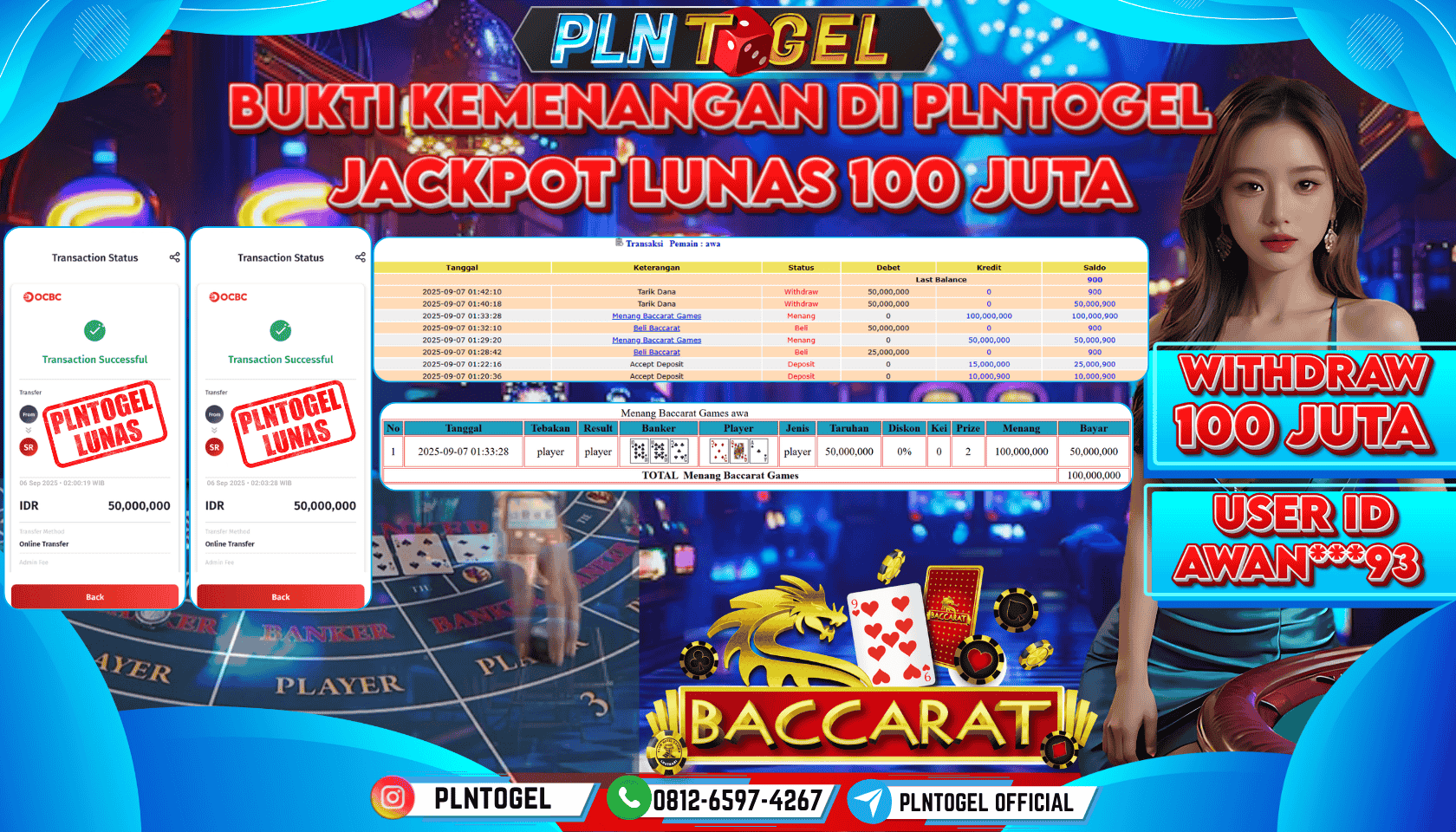 BUKTI JACKPOT LIVE GAME 6 September 2025 Posted by ADMIN PLNTOGEL SPEED BACCARAT 2 SABTU, 06 SEPTEMBER 2025 RP 100.000.000,- SELAMAT KEPADA PEMENANG, SALAM JP! Updated: 6 September 2025 at 06:26 ◀ PREDIKSI TOTO MACAU 5D BUKTI JACKPOT SLOT GAMES ▶