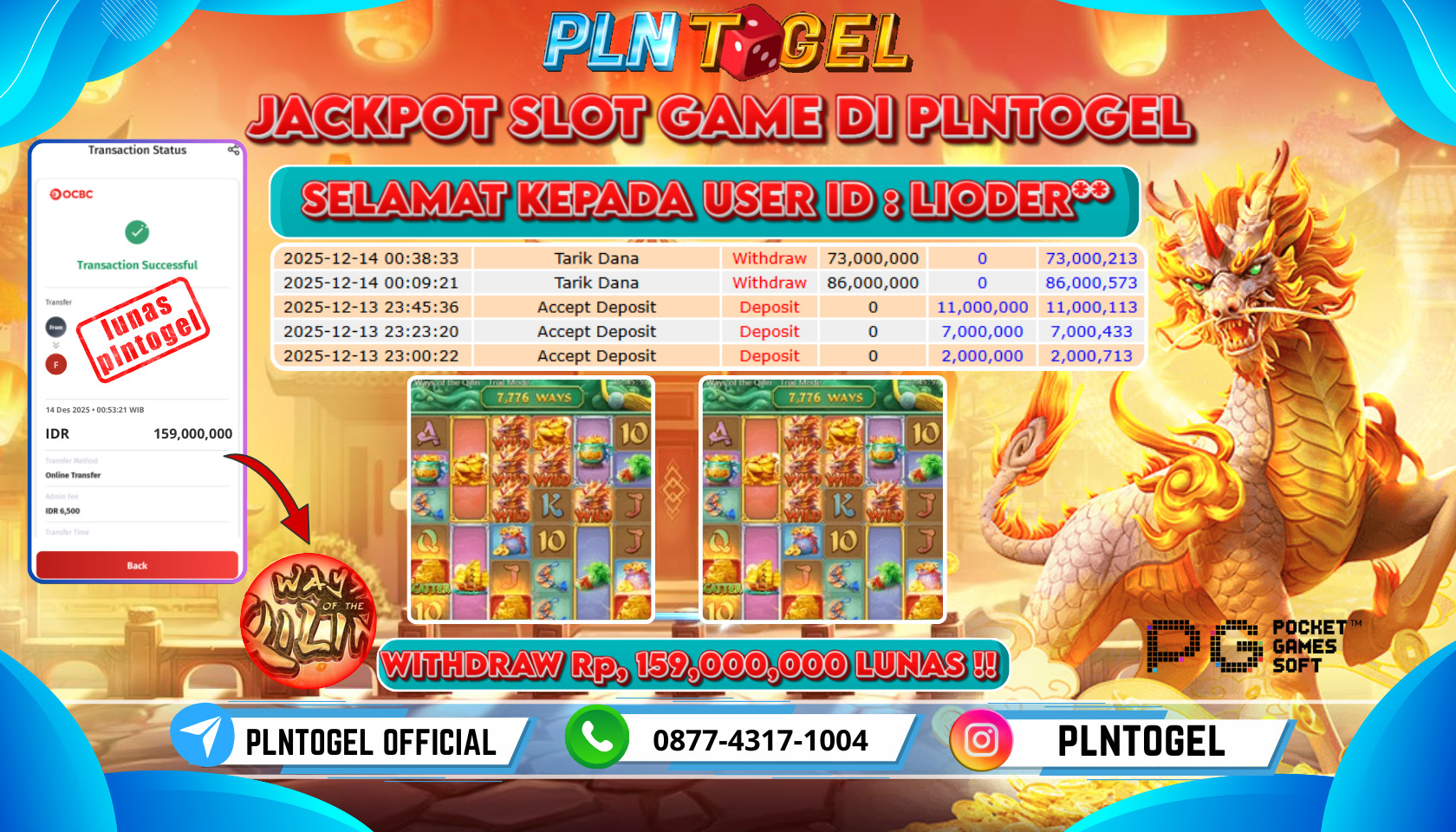 BUKTI JACKPOT SLOT GAME 14 Desember 2025 Posted by ADMIN PLNTOGEL WAYS OF THE QILIN MINGGU,14 DESEMBER 2025 RP 159,000,000,- SELAMAT KEPADA PEMENANG, SALAM JP Updated: 14 Desember 2025 at 04:31 ◀ PREDIKSI TOTO MACAU 5D BUKTI JACKPOT TOGEL ONLINE ▶