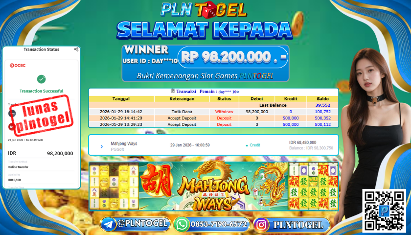 BUKTI JACKPOT SLOT GAME 29 Januari 2026 Posted by ADMIN PLNTOGEL MAHJONG WAYS KAMIS, 29 JANUARI 2026 RP 98,200,000,- SELAMAT KEPADA PEMENANG, SALAM JP Updated: 30 Januari 2026 at 18:14 ◀ BUKTI JACKPOT SLOT GAME PREDIKSI JITU OREGON03 POOLS ▶