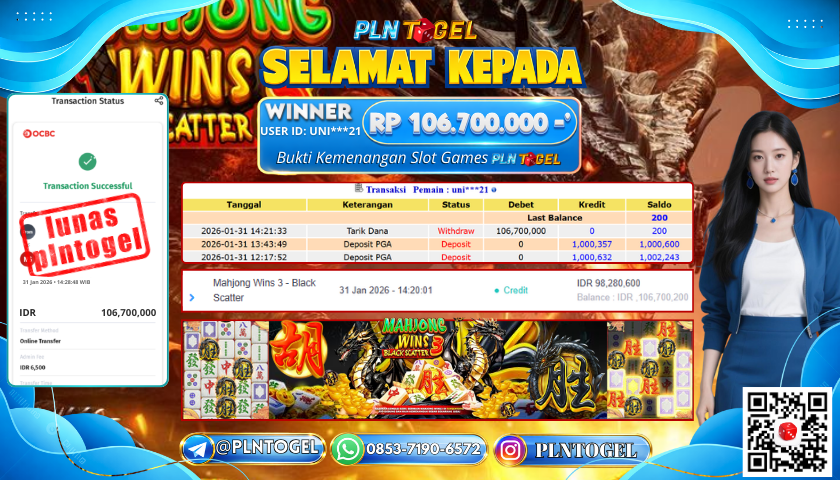 BUKTI JACKPOT SLOT GAME 31 Januari 2026 Posted by ADMIN PLNTOGEL MAHJONG WINS – 3 BLACK SCATTER SABTU, 31 JANUARI 2026 RP 106,700,000,- SELAMAT KEPADA PEMENANG, SALAM JP Updated: 31 Januari 2026 at 15:23 ◀ PREDIKSI JITU PCSO POOLS BUKTI JACKPOT SLOT GAME ▶