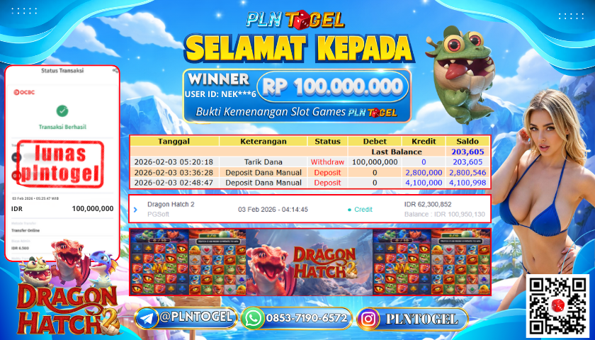 BUKTI JACKPOT SLOT GAME 3 Februari 2026 Posted by ADMIN PLNTOGEL DRAGON HATCH 2 SELASA, 03 FEBRUARY 2026 RP 100,000,000,- SELAMAT KEPADA PEMENANG, SALAM JP Updated: 3 Februari 2026 at 21:54 ◀ BUKTI JACKPOT SLOT GAME BUKTI JACKPOT SLOT GAME ▶