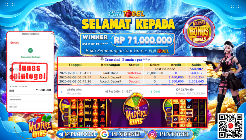 BUKTI JACKPOT SLOT GAME 8 Februari 2026 Posted by ADMIN PLNTOGEL WILDFIRE WINS MINGGU, 08 FEBRUARY 2026 RP 71,000,000,- SELAMAT KEPADA PEMENANG, SALAM JP Updated: 8 Februari 2026 at 02:30 ◀ PREDIKSI JITU SINGAPORE POOLS BUKTI JACKPOT SLOT GAME ▶