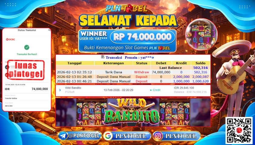 BUKTI JACKPOT SLOT GAME 13 Februari 2026 Posted by ADMIN PLNTOGEL WILD BANDITO JUMAT, 13 FEBRUARY 2026 RP 74,000,000,- SELAMAT KEPADA PEMENANG, SALAM JP Updated: 13 Februari 2026 at 02:42 ◀ BUKTI JACKPOT SLOT GAME BUKTI JACKPOT SLOT GAME ▶