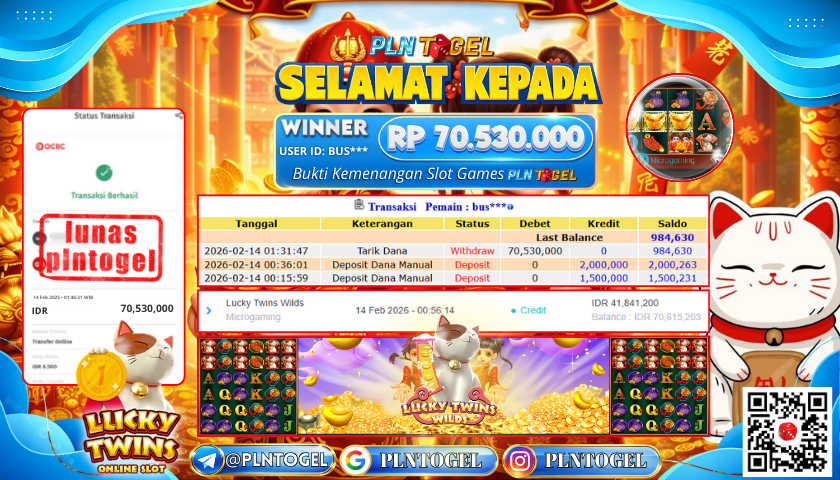 BUKTI JACKPOT SLOT GAME 14 Februari 2026 Posted by ADMIN PLNTOGEL LUCKY TWINS WILDS SABTU, 14 FEBRUARY 2026 RP 70,530,000,- SELAMAT KEPADA PEMENANG, SALAM JP Updated: 14 Februari 2026 at 02:17 ◀ BUKTI JACKPOT SLOT GAME BUKTI JACKPOT SLOT GAME ▶
