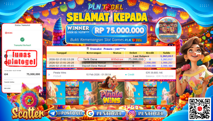 BUKTI JACKPOT SLOT GAME 15 Februari 2026 Posted by ADMIN PLNTOGEL PINATA WINS MINGGU, 15 FEBRUARY 2026 RP 75,000,000,- SELAMAT KEPADA PEMENANG, SALAM JP Updated: 15 Februari 2026 at 03:10 ◀ BUKTI JACKPOT SLOT GAME PREDIKSI JITU CAMBODIA POOLS ▶