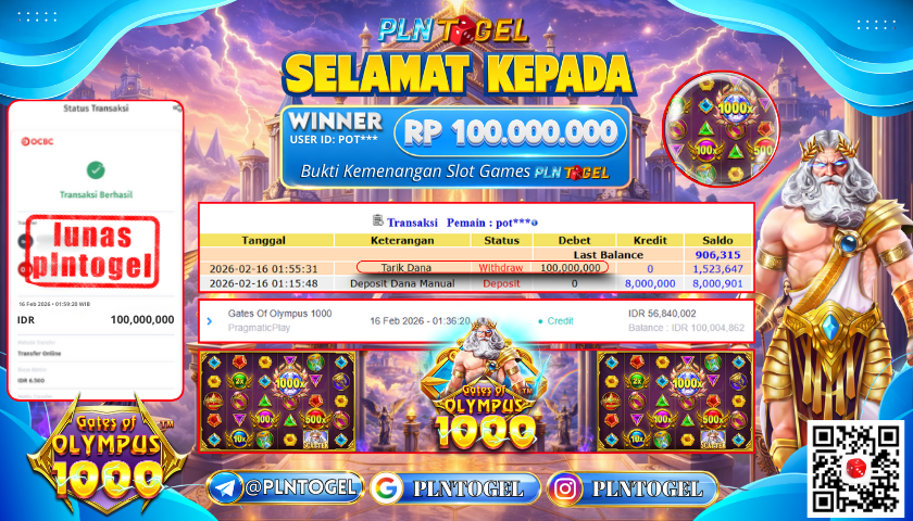 BUKTI JACKPOT SLOT GAME 16 Februari 2026 Posted by ADMIN PLNTOGEL GATES OF OLYMPUS 1000 SENIN, 16 FEBRUARY 2026 RP 100,000,000,- SELAMAT KEPADA PEMENANG, SALAM JP Updated: 16 Februari 2026 at 02:04 ◀ BUKTI JACKPOT SLOT GAME BUKTI JACKPOT SLOT GAME ▶