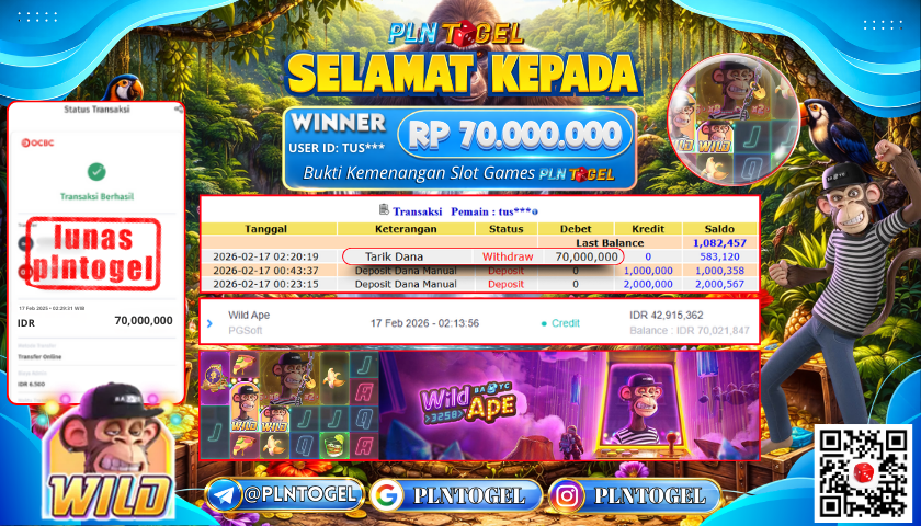 BUKTI JACKPOT SLOT GAME 17 Februari 2026 Posted by ADMIN PLNTOGEL WILD APE SELASA, 17 FEBRUARY 2026 RP 70,000,000,- SELAMAT KEPADA PEMENANG, SALAM JP Updated: 17 Februari 2026 at 03:29 ◀ PREDIKSI JITU TOTO MACAU 5D BUKTI JACKPOT SLOT GAME ▶