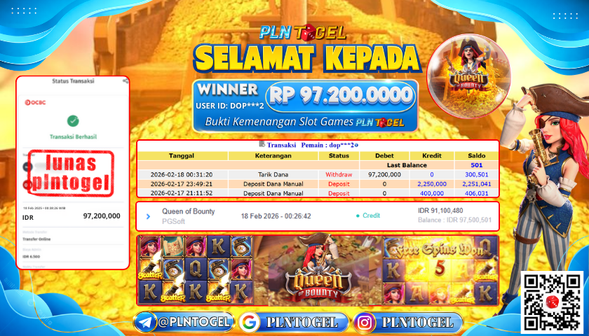 BUKTI JACKPOT SLOT GAME 18 Februari 2026 Posted by ADMIN PLNTOGEL QUEN OF BOUNTY RABU, 18 FEBRUARY 2026 RP 97,200,000,- SELAMAT KEPADA PEMENANG, SALAM JP Updated: 18 Februari 2026 at 06:54 ◀ BUKTI JACKPOT SLOT GAME BUKTI JACKPOT SLOT GAME ▶