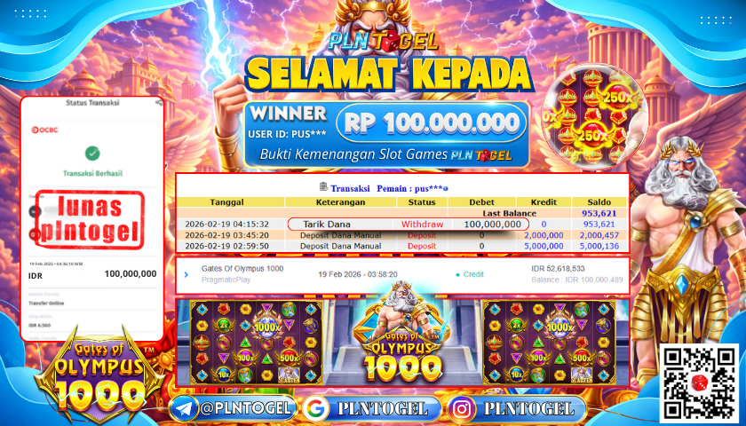 BUKTI JACKPOT SLOT GAME 19 Februari 2026 Posted by ADMIN PLNTOGEL GATES OF OLYMPUS 1000 KAMIS, 19 FEBRUARY 2026 RP 100,000,000,- SELAMAT KEPADA PEMENANG, SALAM JP Updated: 19 Februari 2026 at 04:43 ◀ BUKTI JACKPOT SLOT GAME PREDIKSI JITU OREGON09 POOLS ▶