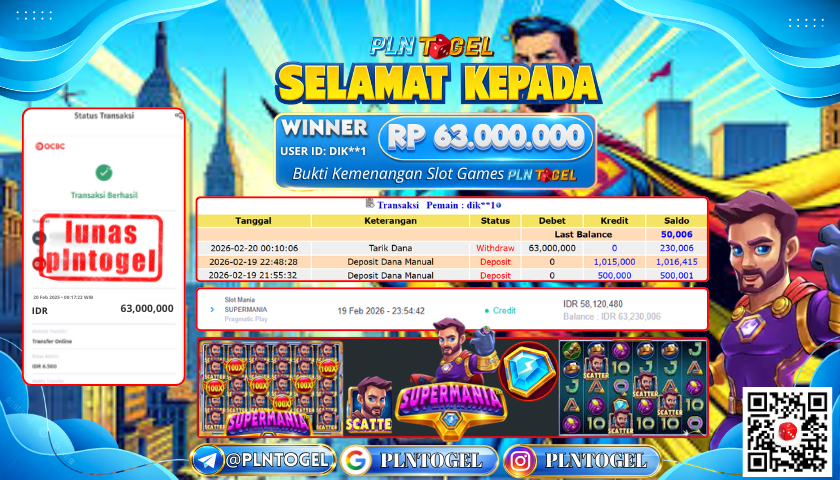 BUKTI JACKPOT SLOT GAME 20 Februari 2026 Posted by Admin Plntogel SUPERMANIA JUMAT, 20 FEBRUARY 2026 RP 63.000.000,- SELAMAT KEPADA PEMENANG, SALAM JP! Updated: 20 Februari 2026 at 03:55 ◀ PREDIKSI JITU JAPAN POOLS BUKTI JACKPOT SLOT GAME ▶