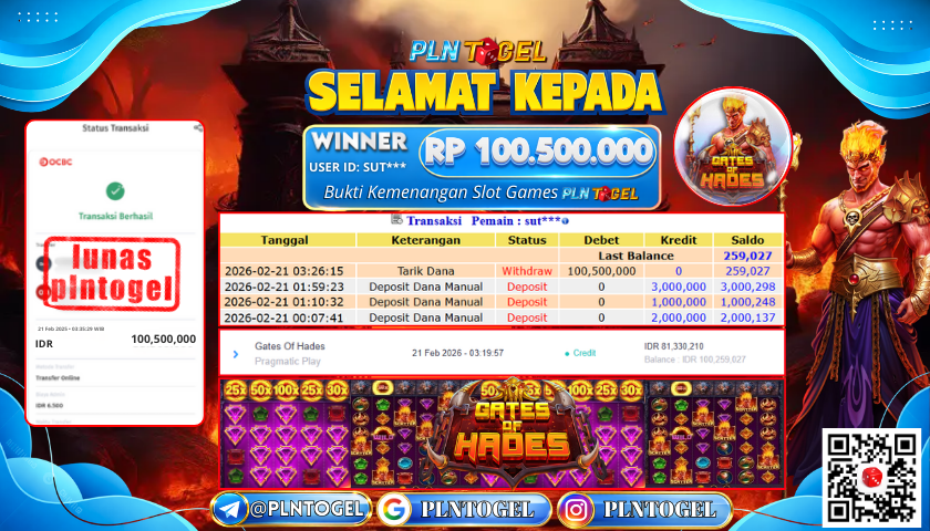 BUKTI JACKPOT SLOT GAME 21 Februari 2026 Posted by Admin Plntogel GATES OF HADES SABTU, 21 FEBRUARY 2026 RP 100.500.000,- SELAMAT KEPADA PEMENANG, SALAM JP! Updated: 21 Februari 2026 at 04:21 ◀ BUKTI JACKPOT SLOT GAME PREDIKSI JITU CAMBODIA POOLS ▶