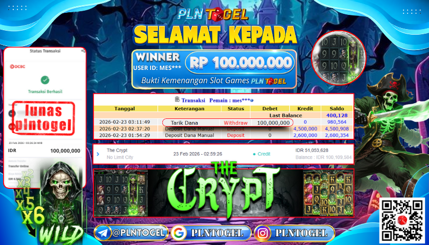 BUKTI JACKPOT SLOT GAME 23 Februari 2026 Posted by Admin Plntogel THE CRYPT SENIN, 23 FEBRUARY 2026 RP 100.000.000,- SELAMAT KEPADA PEMENANG, SALAM JP! Updated: 23 Februari 2026 at 03:20 ◀ BUKTI JACKPOT SLOT GAME BUKTI JACKPOT SLOT GAME ▶