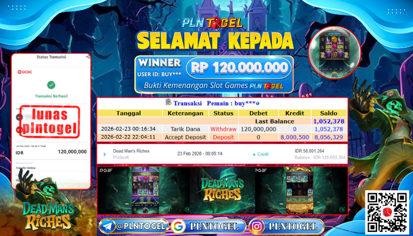 BUKTI JACKPOT SLOT GAME 23 Februari 2026 Posted by Admin Plntogel DEAD MANS RICHES SENIN, 23 FEBRUARI 2026 RP 120.000.000,- SELAMAT KEPADA PEMENANG, SALAM JP! Updated: 23 Februari 2026 at 04:03 ◀ BUKTI JACKPOT SLOT GAME BUKTI JACKPOT SLOT GAME ▶