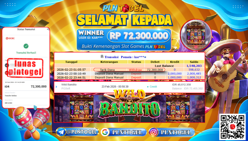 BUKTI JACKPOT SLOT GAME 23 Februari 2026 Posted by Admin Plntogel WILD BANDITO SENIN, 23 FEBRUARI 2026 RP 72.300.000,- SELAMAT KEPADA PEMENANG, SALAM JP! Updated: 23 Februari 2026 at 04:03 ◀ BUKTI JACKPOT SLOT GAME PREDIKSI JITU NUSANTARA POOL ▶