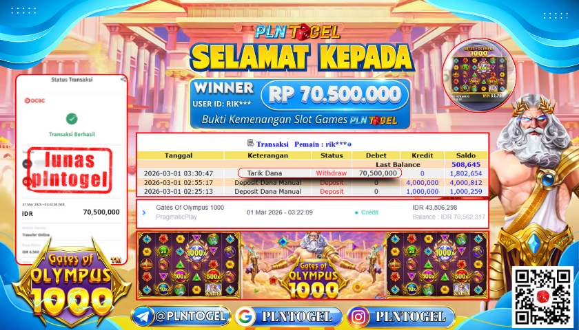 BUKTI JACKPOT SLOT GAME 1 Maret 2026 Posted by Admin Plntogel GATES OF OLYMPUS 1000 MINGGU, 01 MARET 2026 RP 70.500.000,- SELAMAT KEPADA PEMENANG, SALAM JP! Updated: 1 Maret 2026 at 03:59 ◀ BUKTI JACKPOT SLOT GAME BUKTI JACKPOT SLOT GAME ▶