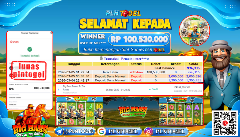 BUKTI JACKPOT SLOT GAME 5 Maret 2026 Posted by Admin Plntogel BIG BASS RETURN TO THE RACES KAMIS, 05 MARET 2026 RP 100.530.000,- SELAMAT KEPADA PEMENANG, SALAM JP! Updated: 5 Maret 2026 at 04:42 ◀ BUKTI JACKPOT SLOT GAME BUKTI JACKPOT SLOT GAME ▶