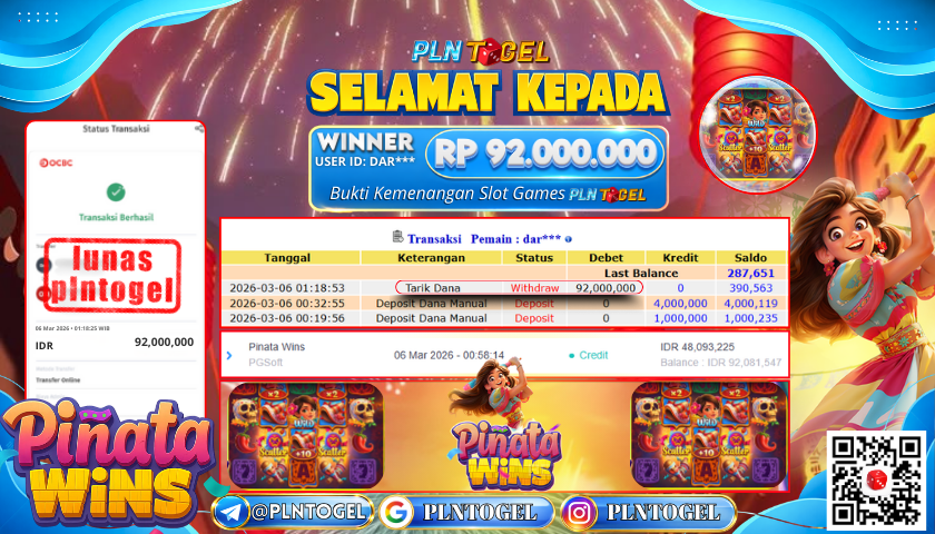 BUKTI JACKPOT SLOT GAME 6 Maret 2026 Posted by Admin Plntogel PINATA WINS JUMAT, 06 MARET 2026 RP 92.000.000,- SELAMAT KEPADA PEMENANG, SALAM JP! Updated: 6 Maret 2026 at 13:41 ◀ BUKTI JACKPOT SLOT GAME BUKTI JACKPOT SLOT GAME ▶