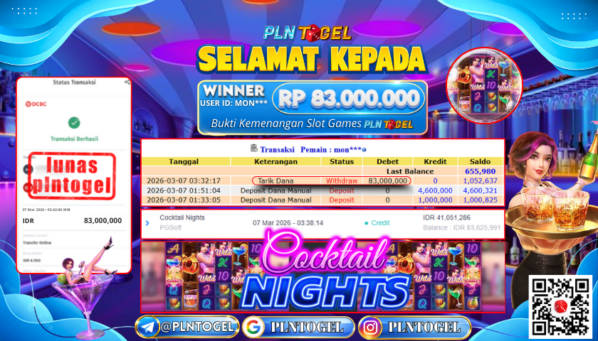 BUKTI JACKPOT SLOT GAME 7 Maret 2026 Posted by Admin Plntogel COCKTAIL NIGHTS SABTU, 07 MARET 2026 RP 83.000.000,- SELAMAT KEPADA PEMENANG, SALAM JP! Updated: 7 Maret 2026 at 03:48 ◀ BUKTI JACKPOT SLOT GAME PREDIKSI JITU OREGON03 POOLS ▶