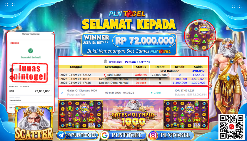 BUKTI JACKPOT SLOT GAME 9 Maret 2026 Posted by Admin Plntogel GATES OF OLYMPUS 1000 SENIN, 09 MARET 2026 RP 72.000.000,- SELAMAT KEPADA PEMENANG, SALAM JP! Updated: 9 Maret 2026 at 05:28 ◀ BUKTI JACKPOT SLOT GAME BUKTI JACKPOT SLOT GAME ▶