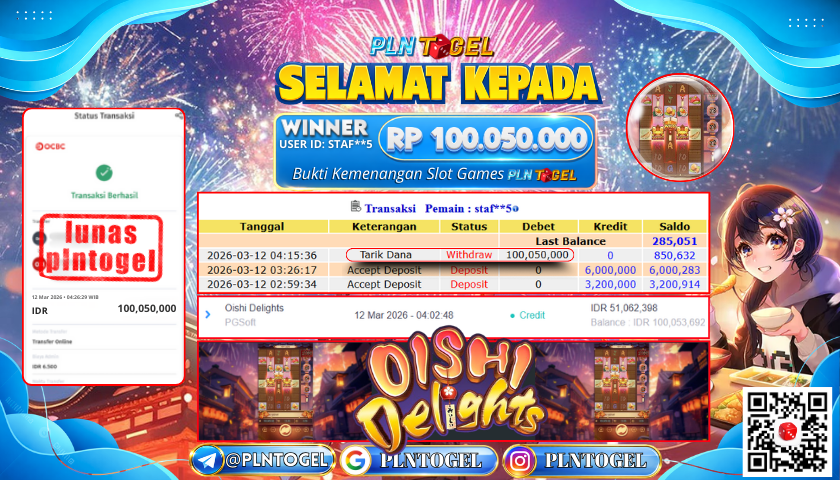 BUKTI JACKPOT SLOT GAME 12 Maret 2026 Posted by Admin Plntogel OISHI DEIGHTS KAMIS, 12 MARET 2026 RP 100.050.000,- SELAMAT KEPADA PEMENANG, SALAM JP! Updated: 12 Maret 2026 at 04:22 ◀ BUKTI JACKPOT SLOT GAME PREDIKSI JITU JAPAN POOLS ▶