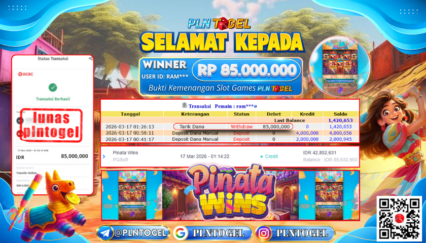 BUKTI JACKPOT SLOT GAME 17 Maret 2026 Posted by Admin Plntogel PINATA WINS SELASA, 17 MARET 2026 RP 85.000.000,- SELAMAT KEPADA PEMENANG, SALAM JP! Updated: 17 Maret 2026 at 03:29 ◀ BUKTI JACKPOT SLOT GAME PREDIKSI JITU TAIWAN POOL ▶