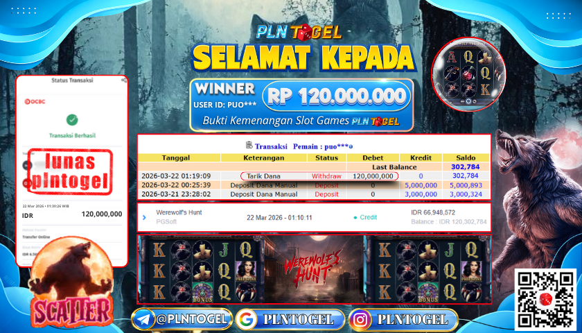 BUKTI JACKPOT SLOT GAME 22 Maret 2026 Posted by Admin Plntogel WEREWOLF’S HUNT MINGGU, 22 MARET 2026 RP 120.000.000,- SELAMAT KEPADA PEMENANG, SALAM JP! Updated: 22 Maret 2026 at 03:33 ◀ PREDIKSI JITU SINGAPORE POOLS BUKTI JACKPOT SLOT GAME ▶