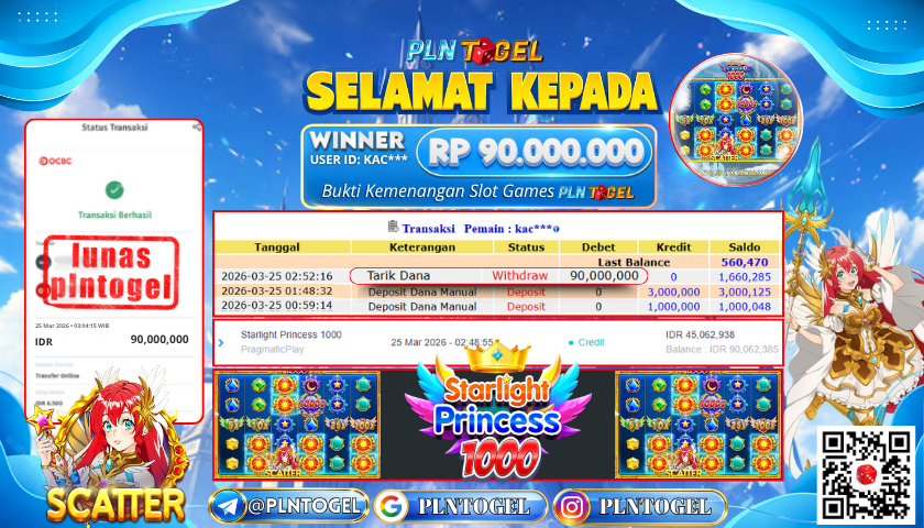 BUKTI JACKPOT SLOT GAME 25 Maret 2026 Posted by Admin Plntogel STARLIGHT PRINCESS 1000 RABU, 25 MARET 2026 RP 90.000.000,- SELAMAT KEPADA PEMENANG, SALAM JP! Updated: 25 Maret 2026 at 03:04 ◀ BUKTI JACKPOT SLOT GAME PREDIKSI JITU OREGON03 POOLS ▶