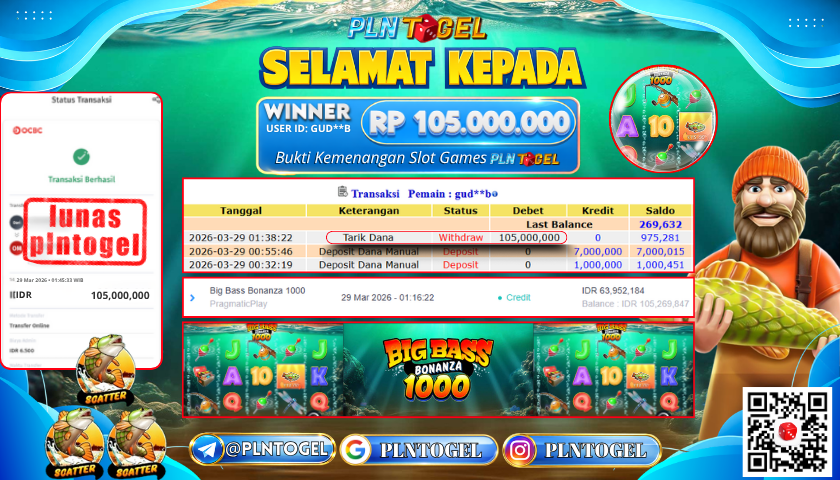 BUKTI JACKPOT SLOT GAME 29 Maret 2026 Posted by Admin Plntogel BIG BASS BONANZA 1000 MINGGU, 29 MARET 2026 RP 105.000.000,- SELAMAT KEPADA PEMENANG, SALAM JP! Updated: 29 Maret 2026 at 02:18 ◀ BUKTI JACKPOT SLOT GAME PREDIKSI TOTO MACAU ▶